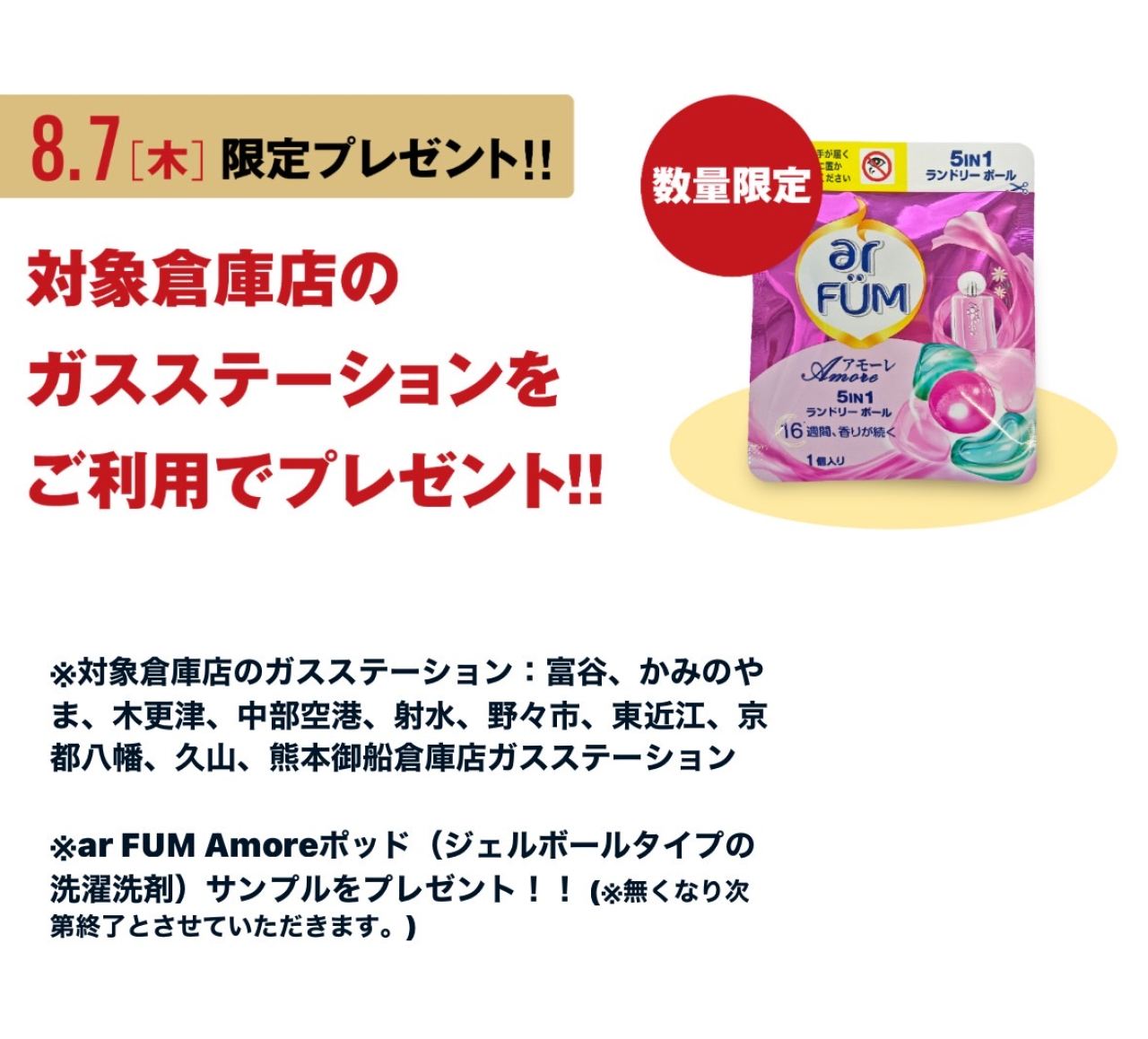 ガスステーション8月7日利用でお得!試供品がもらえたり割引クーポンがもらえます。 #店舗 #かみのやま 投稿者:(名無し)さん id:iyP3Pzn.r4fo2025/8/6(水) 06:47 登録 ★ 5 1 報告 コメント 投稿者の表示 [1] 2025/8/6(水) 06:54 (名無し)さん id:iKY/Eiut2/n2 [1](名無し)さんの写真 返信 報告