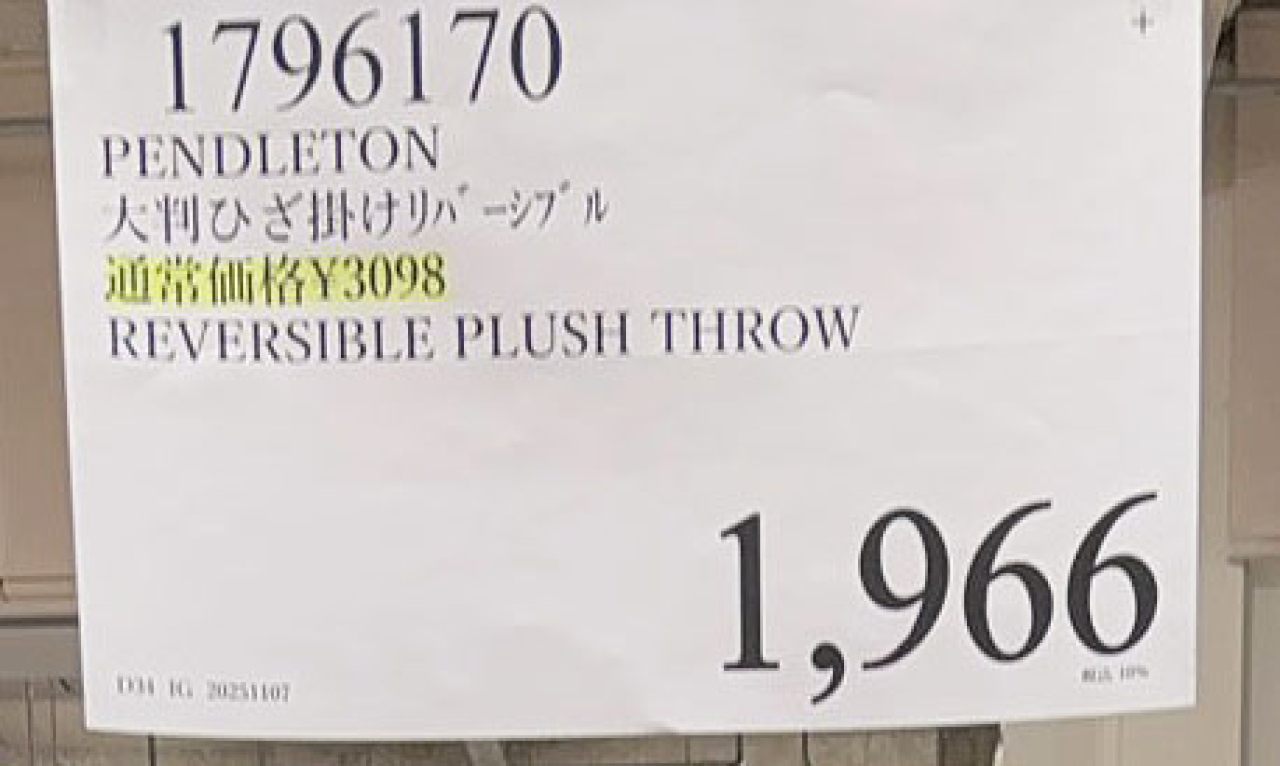 ペンドルトンの大判ひざ掛けが安かった3098円が1966円になってました。残り少ないです。 #割引 #多摩境 投稿者:(名無し)さん id:iF5BXrwaxdGA2025/11/7(金) 10:15 登録 ★ 5 1 報告 コメント 投稿者の表示 [1] 2025/11/7(金) 10:31 (名無し)さん id:i89dNF1/DC/g [1](名無し)さんの写真 返信 報告