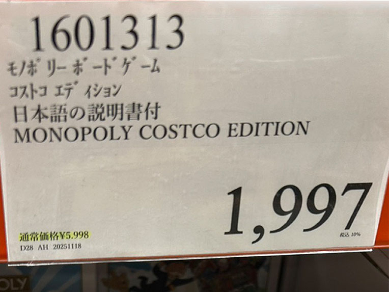 モノポリーコストコエディションが格安通常価格 6388円が1997円になってました。 #割引 #沖縄南城 投稿者:(名無し)さん id:iFwmVHo9cZLo2025/12/11(木) 12:04 登録 ★ 4 1 報告 コメント 投稿者の表示 [1] 2025/12/11(木) 12:51 (名無し)さん id:igqqSAblRHX6 [1](名無し)さんの写真 返信 報告