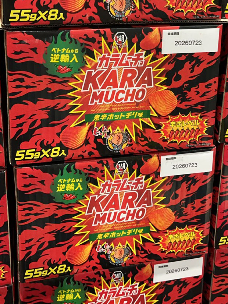 カラムーチョ鬼辛ホットチリ味ベトナムから逆輸入品です。55g×8袋で1178円。 #新商品 #尼崎 投稿者:(名無し)さん id:izcZlkSoWGWo2026/1/22(木) 10:18 登録 ★ 6 1 報告 コメント 投稿者の表示 [1] 2026/1/22(木) 11:09 (名無し)さん id:iAQ4p8ZS2MZs [1](名無し)さんの写真 返信 報告