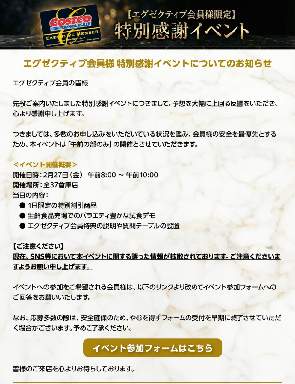 ・エグゼクティブ会員イベント開催が急遽決まった